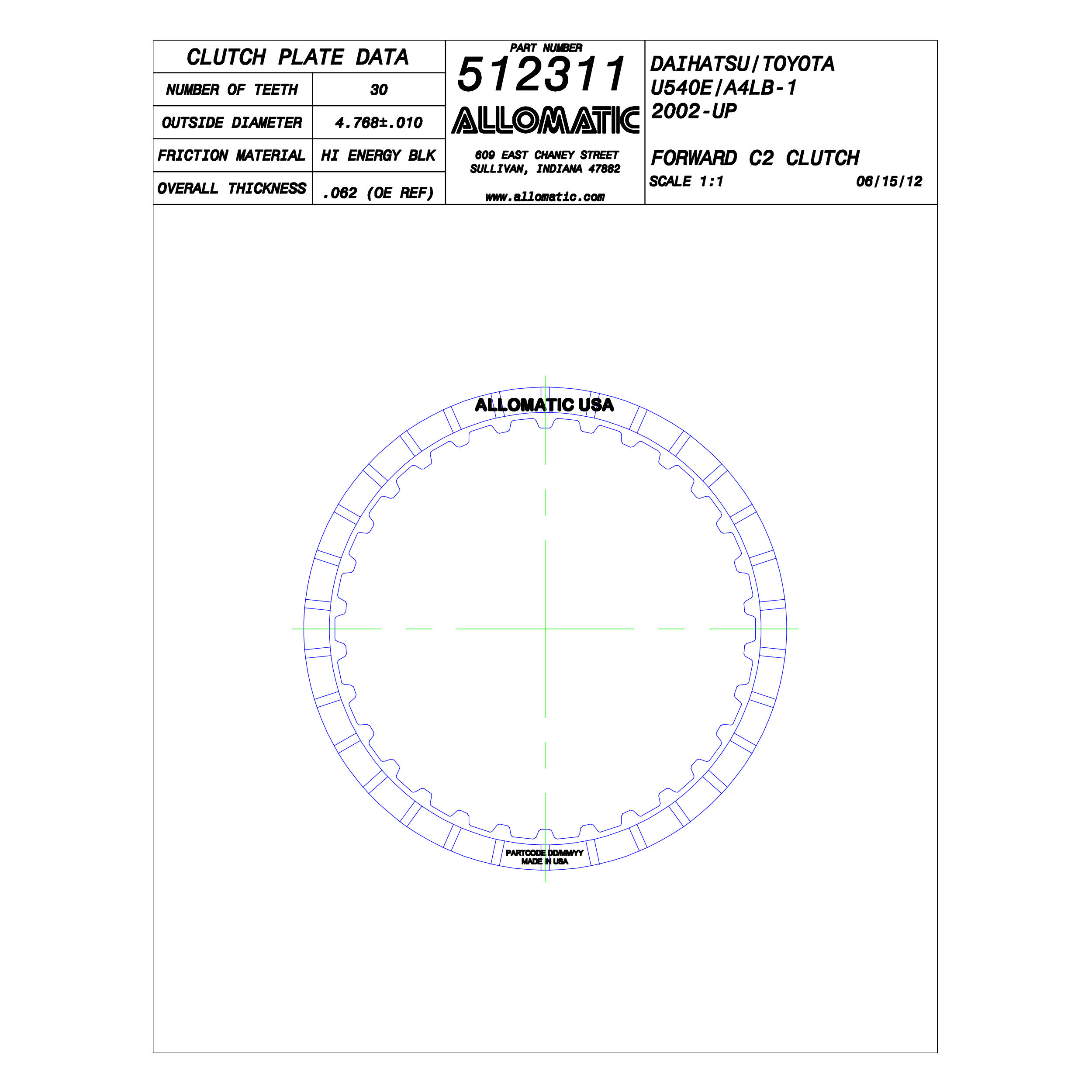 PLATO FRICCION U540E, A4LB1, C2, AVANCE (30D/U4/.062) 02+ ALLOMATIC